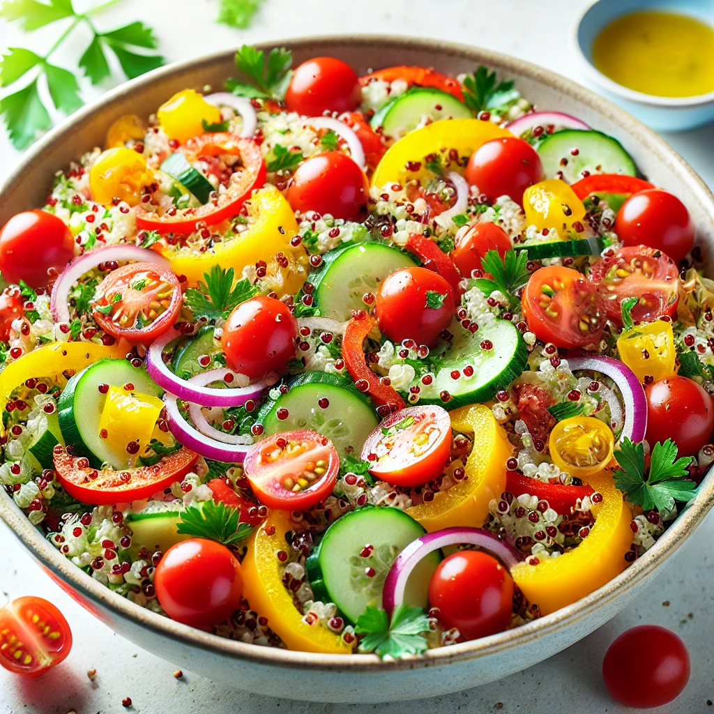 퀴노아 샐러드는 건강하고 맛있으며 만들기 쉬운 요리로, 다양한 영양소를 포함하고 있어 균형 잡힌 식단에 적합합니다. 이 레시피는 퀴노아, 신선한 채소, 올리브 오일, 레몬즙 등으로 구성되어 있으며, 칼로리가 낮고 단백질 함량이 높아 체중 관리와 건강 유지에 도움을 줍니다.